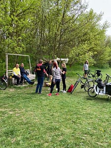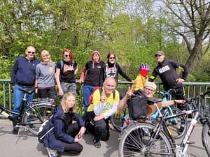 Unsere fahrradverrückte Flitzpiepe Lorenz holte uns an einem schönen Frühlingstag im Jahr 2022 aus dem Winterschlaf und animierte uns zu unserer 1. PankRockRadTour. Ausgestattet mit seinem Bullit, samt Musikbox und ner 4-stündigen Spotify-Playlist traf er sich mit uns vor Rewe in Heinersdorf an den Karpfenteichen.