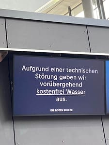 Wir fuhren früh kurz vor 10 Uhr mit dem Auto in Berlin/Britz los, kamen durch drei Baustellen ganz gut durch und gönnten uns Mittag in einem Dörfchen vor Leipzig leckere deutsche Hausmannskost. Nur gut, dass ich am Vorabend reserviert hatte, denn es war ziemlich gut besucht und drei andere Unioner hatten die gleiche Idee wie wir. Dann erst mal nach Leipzig rein und einen Parkplatz suchen und zur StraBa laufen. Die Tickets berechtigen ja zur Nutzung der Öffis, also ganz easy noch drei Stationen zum Zentralstadion gefahren und am Kanal den Weg zum Auswärtsblock gelaufen, begleitet von recht viel Polizei, aber alles ruhig… Noch schnell die mitgebrachten Getränke geleert und hoch zum Einlass. Dieser ging wieder recht schnell und ohne Probleme wie auch schon im Februar beim letzten Auswärtsspiel der Vorsaison. Nach 2-3 Minuten waren wir drin und dann hoch zum Block gelaufen. Mann, war das schon wieder voll im den Blöcken, dabei waren wir eine Stunde vor Spielbeginn schon da… Wir wunderten uns über die sehr langen Schlangen an den Bierständen und siehe da, es gab Probleme mit den Kartensystem…nix zu trinken und zu essen…Ich dachte erst an einem bösen Streich und dass es nur uns Unioner betrifft, aber nein, es erschien eine Anzeige, dass im ganzen Stadion die Kartensysteme nicht funktionieren und um Geduld gebeten wird. Ha… kein Umsatz für diese komische rote Brause…grins. Wir bekamen dann erst mal kostenlos Wasser und da wir ja mit dem Auto da waren, war das auch erst mal ok. Pünktlich zum Spielbeginn kam die Durchsage, dass die Kartensysteme wieder funktionieren und aufgrund der Umstände gibt es Happy Hour.