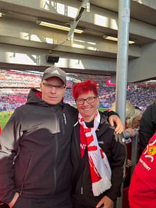 Beim Verlassen des Stadions durften wir natürlich wieder nicht zurück zur StraBa an der Festwiese, sondern mussten einmal um das ganze Stadion laufen, begleitet von sehr viel Uniformierten… aber es blieb ruhig, soweit wir das mitbekamen. Endlich an der StraBa angekommen, meinte eine Security-Kraft, dass es heute ungewöhnlich ruhig ist und ihr das komisch vorkommt… naja, wir konnten dann entspannt drei Stationen zurück zum unserem Parkplatz fahren und mit dem Auto wieder zurück in die Hauptstadt tuckeln. Zufrieden und etwas geschafft waren wir kurz vor 21 Uhr wieder daheim, im Sportstudio später noch mal die Höhepunkte des Spieles angucken und alles gut.