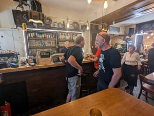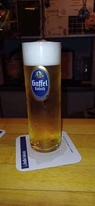 In der nächsten Pinte gleich mal als Touri geoutet und 2x 4 große Kölsch geordert. Diese wurden auch zackig in Touristengläsern geliefert. Ja, es gibt Kölsch auch in Halblitergläsern.
