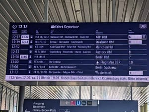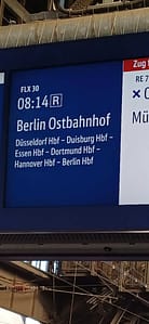 Nach empfehlenswerter Curry mit Haussoße und zusätzlicher Schrippe für F. suchten wir uns ein sonniges Plätzchen in schlagweite des lauschigen gesundbrunnener Verkehrsknotenpunktes und genossen unsere mitgebrachten Kaltgetränke. Wir hatten schließlich Zeit, denn der flixe Train hatte 55 Minuten Verspätung in Aussicht gestellt. Unverhofft wurde die Zeit dann aber doch noch knapp. Es war nun Eile plötzlich geboten, um die für uns bereit gestellten Plätze im Wagon 9, den letzten des Zug, einzunehmen.