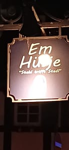 Nach gestilltem Durst hurtig nochmals an diesem sakralen Phallussymbol vorbei zur S-Bahn, wieder diesen Fluss überquerend ab nach Spich, wo unsere Gastgeberin Bärbel schon mit massig Metbrötchen aus ortsansässiger Metzgerei auf uns wartete. Der Abend endete dann im „Em Hüsje“, einer urigen Eingeborenenkneipe, wo noch sage und schreibe 60! Kölsch und eine Runde Marillenbrand in uns ihren Meister fanden. Es muss hier nicht extra erwähnt werden, dass wir wie gewohnt als letzten Gäste den Laden verließen. Fast wie zu Hause.
