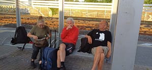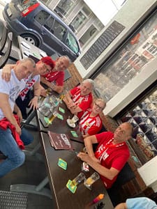 Viel war zunächst nicht los und so fanden wir im besagten Wagon doch noch unseren Skattisch nebst Plätzen. Lustig fanden wir dann, dass dann spontan auch noch die Wagenreihung umgekehrt wurde. Plötzlich waren wir im Wagen 1, also nicht mehr hinten, sondern ganz vorne. Ein gutes Omen für unser vergöttertes Team???? Nach dem Motto „imma weita, janz nach vorn“?